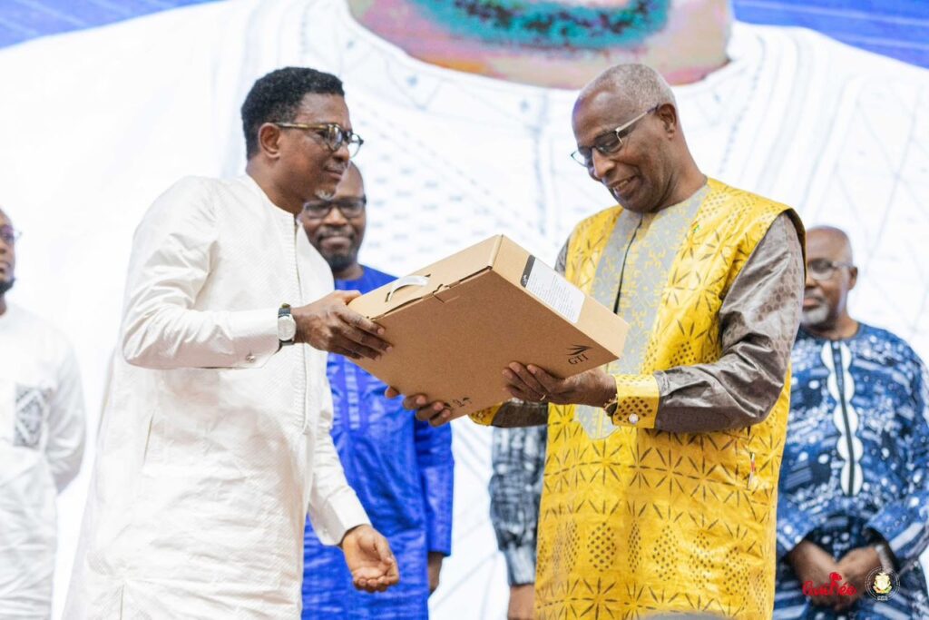 La remise de 𝟏 𝟎𝟎𝟎 𝐨𝐫𝐝𝐢𝐧𝐚𝐭𝐞𝐮𝐫𝐬 𝐩𝐨𝐫𝐭𝐚𝐛𝐥𝐞𝐬 aux enseignants-chercheurs, ce vendredi à l’Université Gamal Abdel Nasser de Conakry, marque une nouvelle étape dans la stratégie nationale de transformation numérique. En annonçant une seconde phase qui portera le dispositif à 𝟐 𝟎𝟎𝟎, le Premier ministre 𝐀𝐦𝐚𝐝𝐨𝐮 𝐎𝐮𝐫𝐲 𝐁𝐚𝐡 a rappelé que cette opération « affirme la souveraineté numérique du pays et pose les bases d’un appareil scientifique moderne et crédible ».