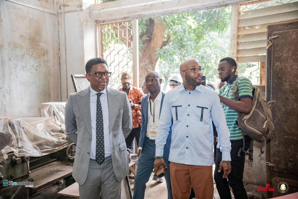 AccompagnĂ© du Recteur, Pr Alpha Kabinet Keita, et du Vice-recteur chargĂ© des Ă©tudes, Dr Ansoumane Camara, le ministre a parcouru les diffĂ©rents blocs en cours dâamĂ©nagement, Ă©valuant le niveau de finition et la conformitĂ© des ouvrages aux normes acadĂ©miques et techniques requises.